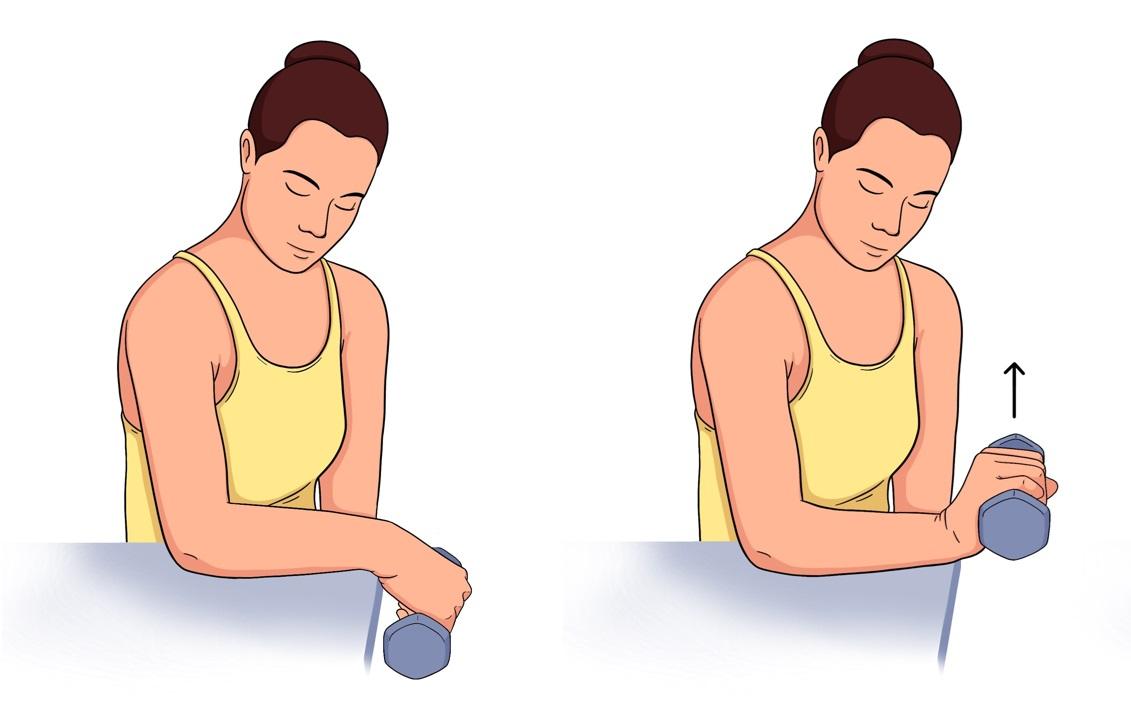 رفع الدمبل باستخدام الرسغ فقط.